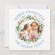 Dusty bleu Joyeux Noël et carré fleuri en couronne carte photo. Personnalisez avec votre propre photo et texte. L'arrière comprend un motif à pois bleu poussiéreux.