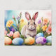 Cartes Pour Fêtes Annuelles Easter Bunny with Spring Flowers, Painted Eggs