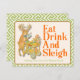 Spread tropical cheer with our personalized "Eat, Drink and Sleigh" Christmas postcard! Part of the Eat, Drink and Be Merry Christmas Collection, this postcard features the same charming design of a chic reindeer pushing a bamboo bar cart with Christmas drinks, accompanied by playful monkeys in Santa hats. The witty "Eat, Drink and Sleigh" phrase sets a festive tone, making it perfect for holiday greetings, party invitations, or thank-you notes.