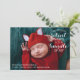 Cette annonce de naissance pour les fêtes minimalistes comporte une photo qui saigne sur le devant de la carte et une photo qui saigne à l'arrière de la carte. La typographie est moderne avec une touche de fantaisie !