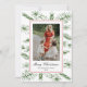 Joyeux Noël ! Envoyez vos vœux de Noël personnalisés avec cette élégante carte de vœux photo de vacances sur le thème botanique boho rustique. Elle comporte un cadre d'aiguilles de pin vertes dessinées à la main sur fond blanc avec un cadre rouge délicat, une photo horizontale et un texte noir dans un mélange de calligraphie vintage et de typographie élégante sur fond blanc. Le verso comporte votre message personnalisé dans le même cadre de pin rustique. Personnalisez cette carte en ajoutant votre photo, votre nom de famille, votre année et votre message via le bouton "Personnaliser ce modèle". Cette carte de Noël photo vintage rustique peut être facilement modifiée pour d'autres couleurs en cliquant sur le bouton "Modifier davantage".
