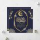 Envoyez vos meilleurs vœux pour l'Eid à votre famille, vos amis et vos proches avec notre carte de vœux Eid Mubarak élégante et moderne avec calligraphie arabe, croissant doré, lanternes suspendues islamiques et ornements, mandala floral sur fond bleu marine. Elle contient de beaux vœux pour l'Eid. Modèle personnalisable que vous pouvez facilement modifier ou supprimer, c'est votre choix.