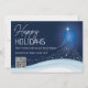 Un design magnifique et luxueux représentant des vagues d'étoiles se rejoignant au-dessus d'un banc de neige abstrait pour former un arbre de Noël avec une étoile brillante scintillant sur un fond bleu foncé. Cette illustration contemporaine et moderne est idéale pour une utilisation professionnelle et personnelle, et les modèles blancs peuvent être personnalisés avec votre texte personnalisé. De même que le code QR encastré (à remplacer par votre propre code ou logo) sur le devant et le modèle de photo sur le dos. Ceux-ci sont idéaux pour la période des fêtes et transmettent l'esprit de la saison aux clients, amis et famille. Joyuses fêtes !