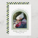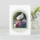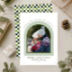 Elégante carte de Noël moderne avec un design de photos de famille en arc et un rétro vert et blanc retour. Une carte de vacances lumineuse et minimaliste, facile à personnaliser avec votre photo et votre message pour un souvenir élégant et intemporel.
