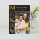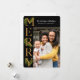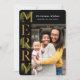Élégante carte de voeux de Noël noir et or présente un joli texte de côté décoré avec de belles branches de pin verdoyantes aquarelle. Personnalisez ce salut de vacances avec votre propre photo et nom.