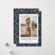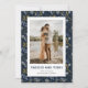 Cartes de fin de année de photo bleus sur mesure avec un élégant arrière - plan botanique bleu. Personnalisez facilement ces cartes de fin de année de photos mariés et joyeux avec votre image et vos noms préférés.