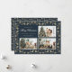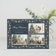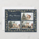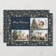 Elégante carte de Noël bleu et or avec collage photo et holly or sur un arrière - plan bleu. Personnalisez facilement cette carte de vacances photo avec vos photos préférées et le nom de famille.