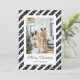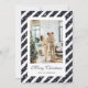 Carte de Noël moderne bleu et blanc avec cadre photo bleu et blanc avec étoiles et police de caractères élégante. Personnalisez facilement cette carte de Noël avec votre photo et votre nom de famille.