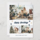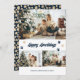 Carte de voeux moderne bleu et or avec trois photos et empreintes de pattes sur le devant et un arrière - plan bleu avec étoiles dorées à l'arrière. Personnalisez facilement cette carte de Noël avec vos photos, votre nom de famille et l'année. Plus d'options de couleur disponibles ou personnalisez facilement cette carte de vacances à n'importe quelle couleur.