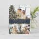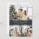 Elégant bleu et or photo Joyeuse carte de Noël avec des saints et des baies sur le devant et la chute de neige à l'arrière. Personnalisez facilement cette carte de vacances moderne avec vos photos et texte.