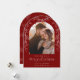 Celebrate the season with these elegant red flat Christmas cards featuring your family photo in a graceful arch frame. Soft gold botanical foliage accents the sides, while “Merry Christmas” appears in beautiful calligraphy script. A timeless blend of holiday warmth and sophistication, perfect for families who love classic red and white Christmas cards with botanical charm.