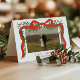 Elégante Bow rouge avec verdure Photo de Noël Carte de Noël. Cliquez sur le bouton personnaliser/modifier avec l'outil de conception pour customiser cette conception avec vos détails personnels.
