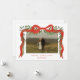 Elégante Bow rouge avec verdure Photo de Noël Carte de Noël. Cliquez sur le bouton personnaliser/modifier avec l'outil de conception pour customiser cette conception avec vos détails personnels.