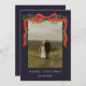 Elégante Bow rouge avec verdure Photo de Noël Carte de Noël. Cliquez sur le bouton personnaliser/modifier avec l'outil de conception pour customiser cette conception avec vos détails personnels.
