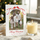 Partagez vos salutations de vacances avec cette carte de Noël élégante avec un arc rouge aquarelle et un ruban design. L'avant affiche une photo en forme d'arc accentuée par un arc peint à la main, tandis que l'arrière comprend un montage de trois photos pour présenter des souvenirs spéciaux supplémentaires. Personnalisez avec votre nom et votre message de vacances pour une carte de Noël classique qui allie charme intemporel et format multi-photo moderne.