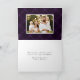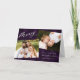 Elégant carte photo de vacances avec "Joyeux" dans un script moderne de calligraphie blanche sur un arrière - plan plaid violet peint. Personnalisez le front en ajoutant deux de vos photos préférées, salutation, nom et l'année. L'intérieur de la carte comporte une photo en haut avec votre message personnel affiché ci-dessous en lettres violet foncé. Le dos de la carte de Noël rustique affiche une photo supplémentaire avec un arrière - plan de plaid violet enneigé. La carte de Noël 4 photos est parfaite pour afficher toutes vos photos de famille préférées !