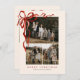 Budget Elegant Red Bow Christmas Four Photo Holiday Card présente une belle aquarelle rouge arc autour de vos deux photos.