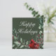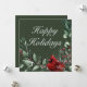 Entrez dans l'esprit des vacances en envoyant à vos amis et à votre famille cette carte de Noël élégante. Ce design présente un riche arrière - plan vert avec un cardinal rouge, des baies d'hiver et des chutes de neige. Le texte personnalisable sur le devant dit "Joyeuses fêtes". Mettez une note ou un message de bienvenue au verso de la carte et signez votre nom.