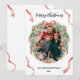 Share warm holiday wishes with this elegant Christmas card featuring a watercolor wreath decorated with soft red bows and flowing ribbon accents. The front showcases a large customizable family photo surrounded by festive greenery, while the back includes a clean layout with subtle ribbon details for writing your own message. This Christmas card is perfect for families who want a simple, stylish, and personalized way to celebrate the season. Upload your photo, add your family name and year, and create a meaningful keepsake to send to loved ones.