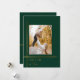 Faites une déclaration de vacances sobre mais impactée avec ce style art déco moderne et élégant avec des lignes chic en or mince dégradé entourant un seul modèle photo d'aspect portrait avec un chasseur profond arrière - plan vert et une police complémentaire. L'arrière comprend un modèle photo carré supplémentaire, une bordure dorée et des champs de texte.