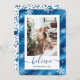 Elégante carte de Noël en fausse feuille bleue avec des flocons de neige. Personnalisez facilement cette carte de vacances avec votre photo et votre texte.