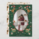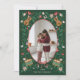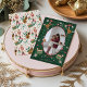 Celebrate the magic of the season with our elegant, whimsical floral Holiday Card — a festive design that blends timeless tradition with artistic charm. The front of the card features a beautifully designed oval photo frame, allowing you to showcase a personal photo at the center, surrounded by our original hand-drawn floral artwork. This delicate frame incorporates enchanting seasonal elements like a drum, violin, blooming florals, leafy details, diamond accents, and dancing music notes — a subtle nod to the classic Nutcracker ballet and the wonder of the holidays. Personalize the card with your name and the year to make it uniquely yours. The reverse side features a bold, coordinated finish with our matching hand-drawn pattern, set against a deep forest green background — adding festive flair from every angle. Perfect for sending warm wishes and holiday cheer, this card is a keepsake-worthy way to share the joy and beauty of the season. Original design and illustration by ©Moodthology Papery