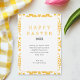 Elégante Floral Jaune Chic Moderne Happy Easter Holiday Card présente un motif floral abstrait chic et sophistiqué aux bords jaune et blanc, créant un look raffiné et festif. Le centre présente "Happy Easter 20XX" en caractères jaunes et noirs, accompagnés de détails de l'événement dans une police moderne et élégante. L'arrière est d'un jaune solide, ajoutant une touche chaude et intemporelle. Parfait pour un brunch de Pâques pour adultes, cette invitation est entièrement personnalisable pour correspondre à votre événement. Besoin d'aide ? Cliquez sur le bouton "Message" ci-dessous. Nous sommes heureux de vous aider dans vos commandes personnalisées.