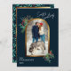 Cette élégante carte de Noël à plat dispose d'un cadre photo en arc doré, entouré de feuillage et de baies d'hiver simples et du message, "Bonnes Fêtes". Faites-le vraiment unique avec votre nom de famille et votre photo. Ajoutez un message personnel au verso ou laissez vide en supprimant du texte dans la section Personnaliser cette section
