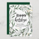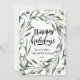 Elégante Gold Confetti Pine Foliage Aquarelle Verdure Design Moderne Script Carte de Vacances. Envoyez des voeux et des salutations à vos proches avec cette carte de Noël minimaliste et moderne. Tous les textes sont pré-arrangés pour que vous personnalisiez facilement et rapidement avec vos propres détails. Joyeuses fêtes !