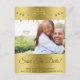 Donnez à vos invités une tête d'avance afin qu'ils sauront effacer leurs calendriers et enregistrer la date pour votre mariage avec cette carte postale Gold Faux Foil Élégante Enregistrer la date. Conçu pour que vous puissiez télécharger votre propre photo. Personnalisable pour que vous puissiez saisir les bonnes informations. Conçu dans le cadre de notre Gold Foil Elegant Wedding Suite, il présente un design simple mais élégant avec un arrière - plan Gold et une bordure florale en faux feuille d'or.
