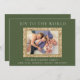 Carte de voeux de Noël moderne, élégante verte et dorée, customisée avec votre photo de famille préférée. Le texte dit, "Joy to the World." Customisez plus loin en ajoutant votre propre nom de famille et/ou de salutation au bas de la page.