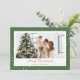 Elégante carte de Noël verte et or avec un beau titre de script festif et des étoiles d'or sur un arrière - plan vert clair à l'avant et à l'arrière. L'arrière - plan peut être changé en n'importe quelle couleur. Personnalisez facilement cette carte verte moderne de vacances photo avec votre photo et le nom de famille.