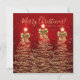 Elegant Merry Christmas / Happy Holidays "Card" Gold Trees with bows on red with a custom text.