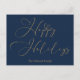 Un élégant script de calligraphie à effet or Happy Holidays embelli de coeurs sur un arrière - plan sophistiqué de bleu profond. Le dos de la carte a un parfum d'étoiles dorées sur un arrière - plan bleu profond. Appuyez sur le bouton Personnaliser pour ajouter votre nom de famille ou des noms individuels, et de répandre un peu de joie de vacances.