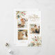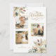 Elégant et unique 3 photos de vacances design floral avec des bouquets d'angle de poinsettia blanche style aquarelle, saint et pin avec éclat d'or. Inclut un accueil Joyeux Noël coulant dans un script décoratif et un champ de texte modifiable. L'arrière comporte un graphique floral complémentaire et des champs de texte supplémentaires.