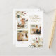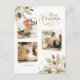 Elégant et unique 3 photos de vacances design floral avec des bouquets d'angle de poinsettia blanche style aquarelle, saint et pin avec éclat d'or. Inclut un accueil Joyeux Noël coulant dans un script décoratif et un champ de texte modifiable. L'arrière comporte un graphique floral complémentaire et des champs de texte supplémentaires.