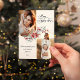 Votre accueil photo de vacances fera une impression durable avec ce design unique avec deux modèles photo en forme d'arc (le mieux orienté verticalement) avec des bordures d'or, un joli spray de botaniques d'hiver aquarelle en rouge et vert, personnalisées "Joyeux Noël" graphisme de texte dans une police de calligraphie fluide et des champs de texte modifiables sur un arrière - plan bouffant. La couleur du graphique texte peut être modifiée dans l'éditeur de conception. Le verso comporte un champ de texte et un modèle photo d'arc supplémentaire.