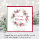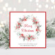 Elégante carte de voeux de vacances avec une couronne d'aquarelle d'un floral rouge et des baies et de saison vert sauge. "Joyeux Noël" est écrit dans un script rouge élégant. Personnalisez votre salutation et votre nom dans une simple typographie moderne.