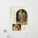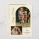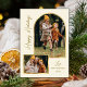 Elegant Gold Arch 3 Photo Happy Holidays Christmas Card. Celebrate the season in style with this elegant family photo Christmas card featuring a modern gold color arch-shaped photo frame. Personalize it with your favorite family photos, family name, and the year on neutral off white or cream beige background. The festive minimalist design is highlighted with elegant faux-gold color Happy Holidays calligraphy text, creating a warm and timeless look. The back showcases one photo and holiday message template with hand lettered name. A perfect holiday card to share with family and friends in winter holiday season.