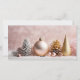 Ce design de carte de Noël se compose d'un agencement élégant et festif avec un arrière - plan mou et rosé. Le devant de la carte comporte trois espaces réservés où vous pouvez télécharger vos propres photos de famille, en ajoutant une touche personnalisée à vos salutations de vacances. "Joyeux Noël" est inscrit dans une police élégante, apportant chaleur et joie à la carte. Les éléments décoratifs comprennent : Une grande boule dorée mate de Noël avec un casquette métallique. Plusieurs cônes de pin, certains d'argent peint et d'autres d'or, dépoussiérés de neige artificielle. Une décoration en or, en forme de cône glacé. Des petites boules roses et dorées éparpillées autour des cônes de pin et de l'ornement plus vaste. Le jeu de couleurs global de l'or, de l'argent et du rose, combiné avec les emplacements photo personnels, crée une atmosphère sophistiquée et accueillante, ce qui rend cette carte parfaite pour partager des souhaits de vacances festives avec les proches.