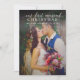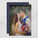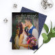 Le design carte photo "Notre premier Noël Marié" pour un couple marié récemment présente une photo de portrait du jour de mariage avec une superposition design en texte blanc et élégante qui peut être personnalisée. L'arrière de la carte présente une couleur arrière - plan bleu marine de minuit (peut être modifiée) avec un motif floral feuillu.