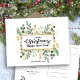 Elégante Gold Foliage Green Watercolor Floral Holiday Card. Envoyez des voeux et des salutations chaleureux à vos proches avec ces cartes postales de voeux simples, chic et modernes ! Un joli cadre d'aquarelle or et feuillage vert avec baies rouges. Le milieu contient votre message de bienvenue "Joyeux Noël & HEUREUX NOUVEL AN" avec des noms personnalisables. Souhaitez-vous des vacances heureuses et un Nouvel An Extraordinaire !