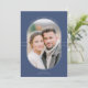 This refined Hanukkah design features an elegant oval photo window framed by clean, modern lines for a beautifully polished look. A soft arch of text at the top delivers warm Hanukkah wishes, while the year is displayed on each side for a balanced, contemporary touch. The deep blue background sets a classic holiday tone, making any photo stand out with sophistication. Customizable text along the bottom allows you to add your family name or personal greeting, creating a timeless way to share Hanukkah happiness with friends and loved ones.