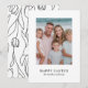 Minimalist Classic Elegant Script Happy Easter Holiday Photo Card with a Pretty Hand Drawn Line Art Tulip Floral Pattern on the back