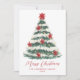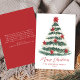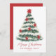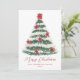 Envoyez des salutations de vacances classiques avec cette Elégante Poinsettia Christmas Tree non-Photo Holiday Card. L'aménagement comprend un arbre de Noël aquarelle peint à la main et décoré de poinsettias rouges, de lampes à cordes brillantes et de branches enneigées. "Joyeux Noël" s'affiche dans un script élégant avec votre nom de famille ou d'entreprise et l'année indiquée ci-dessous dans la lettre serif. Le dos offre de l'espace pour votre message de vacances personnalisé, ce qui en fait un design intemporel non photo parfait pour les familles et les entreprises.