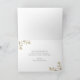 Élégante carte de Noël pliée photo rouge et or mettant en vedette du houx avec des baies, une poinsettia blanche et des botaniques hivernales. Personnalisez facilement cette carte de vacances photo rouge avec votre photo, le nom de la famille et votre message personnalisé.