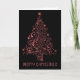 Elégant Joyeux Arbre de Noël Metallic Rouge Look Black Shiny Chic Greeting Card, vous pouvez ajouter votre nom et changer tout le texte