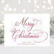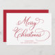 Elégante carte de vacances avec "Joyeux Noël" présentée dans un élégant script de calligraphie rouge. Ajoutez votre salutation personnalisée et votre nom de famille en lettres rouges simples et modernes.
