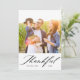 Votre photo a été jumelée avec un script de calligraphie élégant et moderne qui dit "Merci". Personnalisez avec vos propres photos, nom et texte. L'arrière est orné d'un motif à l'aquarelle gris et blanc pour une touche spéciale. Ne manquez pas de visiter le magasin pour voir plus de Cartes photos de Fêtes de Thanksgiving.