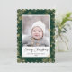 Envoyez des salutations de vacances personnalisables et personnalisées à vos amis, vos collègues et votre famille en cartes photos simples, minimalistes, élégants, amusants, festifs et modernes ! Un beau cadre de variété de flocons d'hiver dorés sur arrière - plan vert sauge entoure votre photo sur papier rond de coquille Saint-Jacques. Le message de bienvenue "Joyeux Noël" est écrit en calligraphie élégante, et ci-dessous présente votre message de bienvenue personnalisé de votre nom de famille dans la typographie moderne. Reverse pour révéler une belle les flocons de neige d'hiver d'or complet sur l'arrière - plan motif vert sauge.